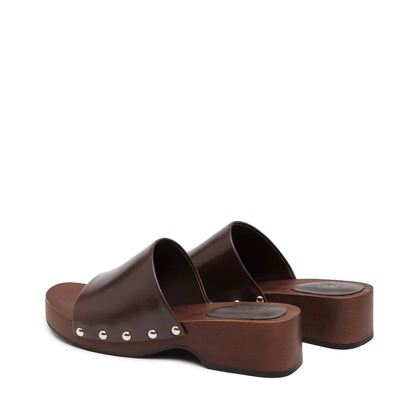 Meet Cherry – She’s so sweet you’ll want to wear her everywhere. Channel off-duty cool in LMS’ modern take on the slip-on wooden clog. Comfortable and practical, The Cherry blends premium leather with statement gold studs for that for that wow factor. Featuring an open toe, a mini flatform and comfortable low heel, the Cherry will take you from beach to bar in complete style.