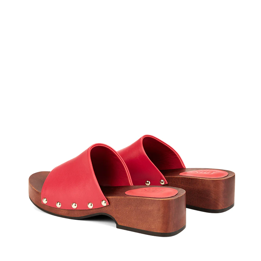 Meet Cherry – She’s so sweet you’ll want to wear her everywhere. Channel off-duty cool in LMS’ modern take on the slip-on wooden clog. Comfortable and practical, The Cherry blends premium leather with statement gold studs for that for that wow factor. Featuring an open toe, a mini flatform and comfortable low heel, the Cherry will take you from beach to bar in complete style.
